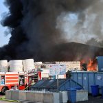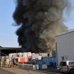 Aus bisher ungeklärten Gründen war es in einer Lagerhalle dem Brand gekommen, welcher für eine massive schwarze Rauchwolke sorgte, die kilometerweit sichtbar war.