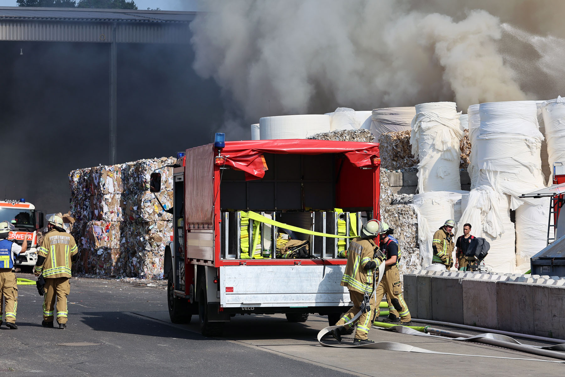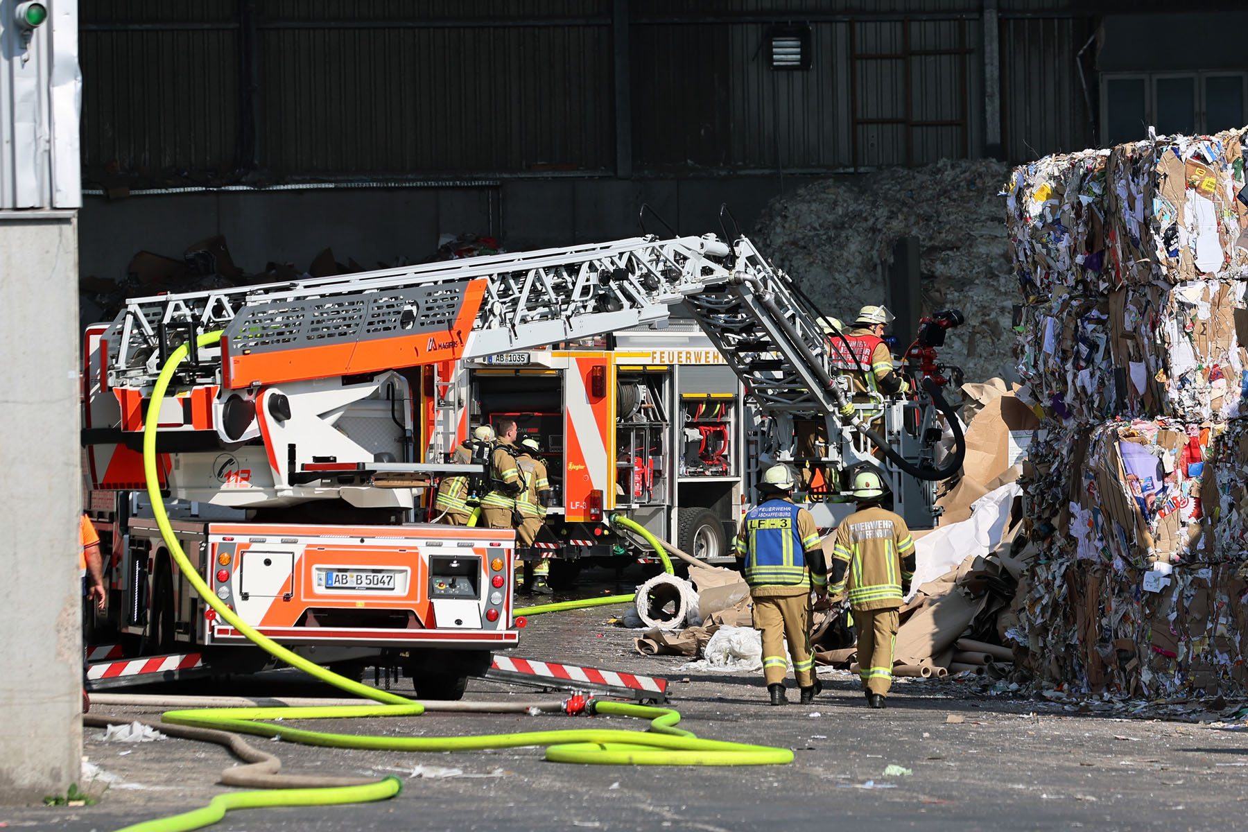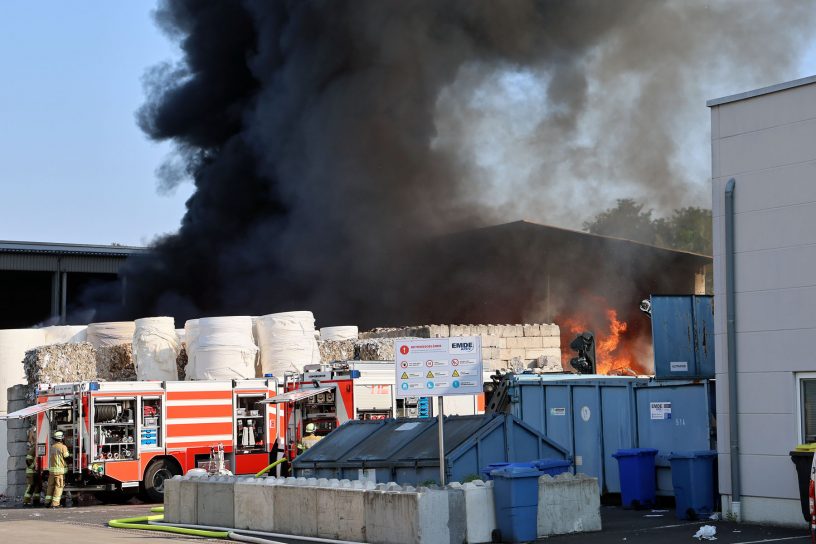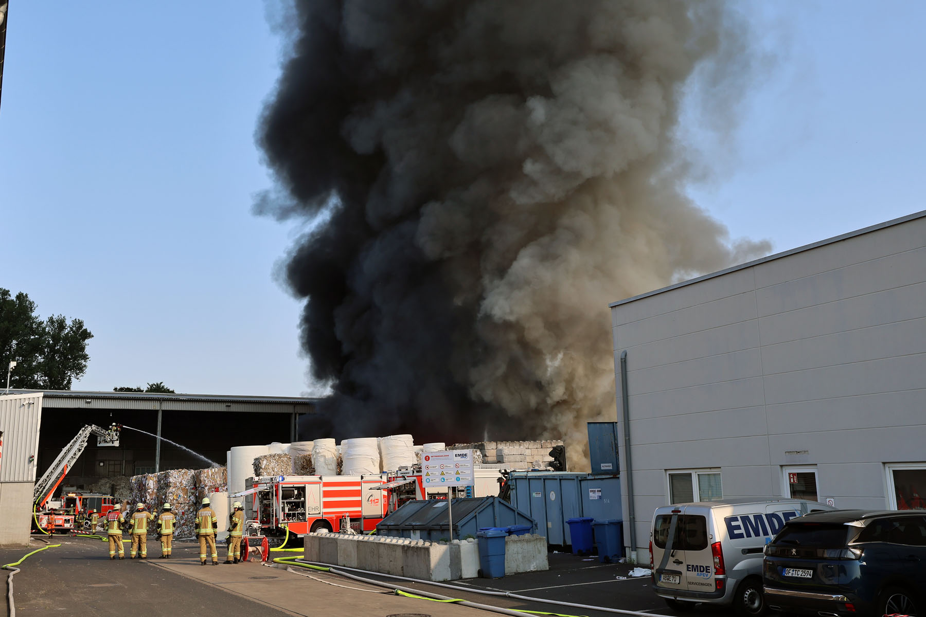 Kurz nach 9 Uhr wurden Feuerwehr, Polizei und Rettungsdient zu dem Feuer auf dem Gelände eines Papier- und Abfallentsorgers in der Glattbacher Straße alarmiert.