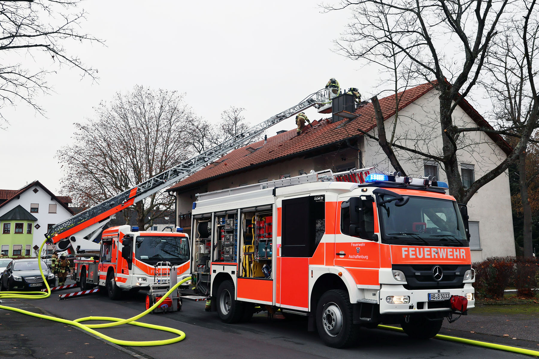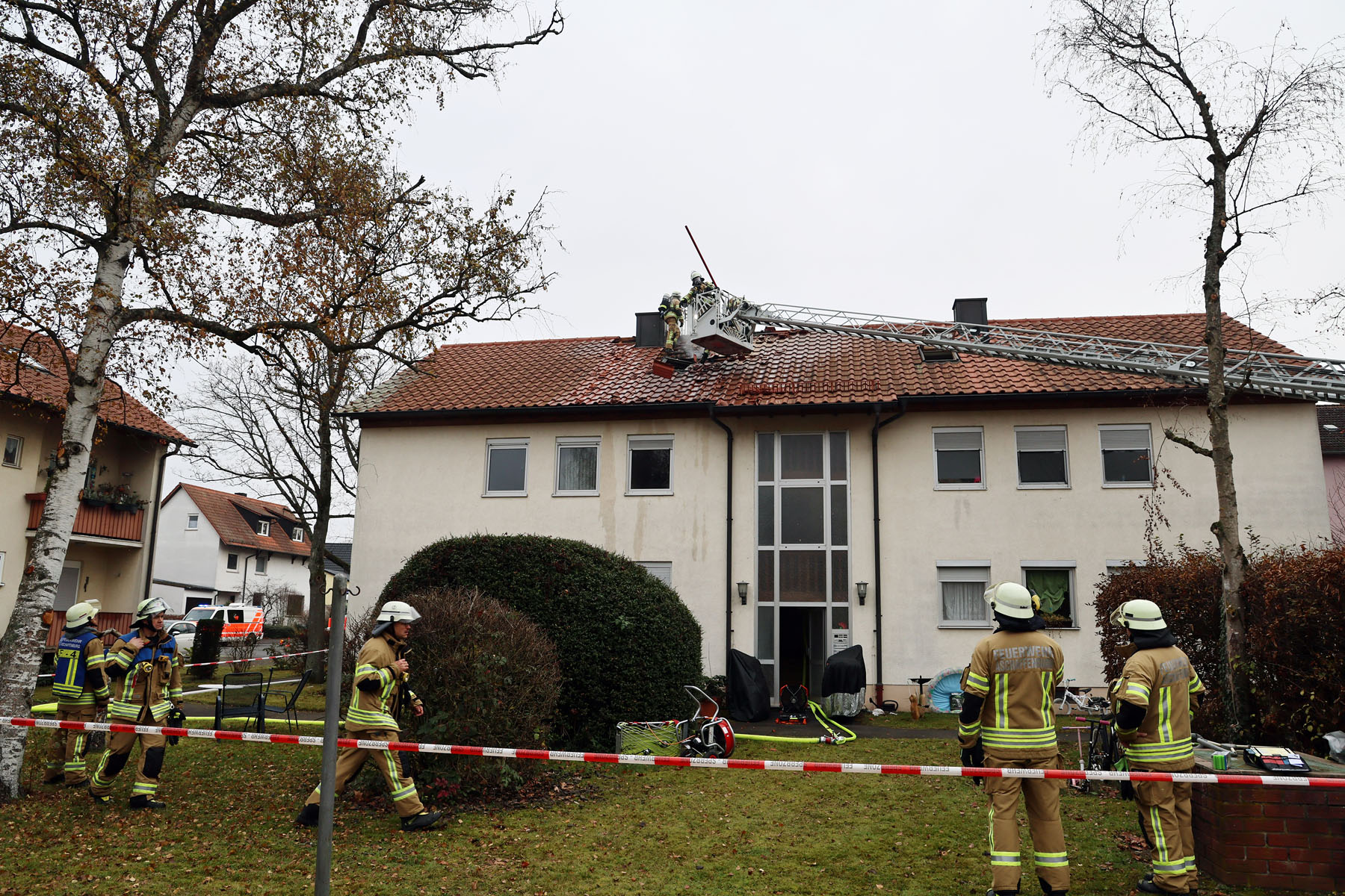 Über eine Drehleiter und im Innenangriff gingen die Feuerwehrkräfte unter Atemschutz vor und konnten den Brand schnell unter Kontrolle bringen. Die Nachlöscharbeiten zogen sich jedoch über längere Zeit hin. Um letzte Glutnester zu erreichen, musste das Dach teilweise geöffnet werden.