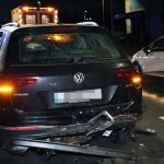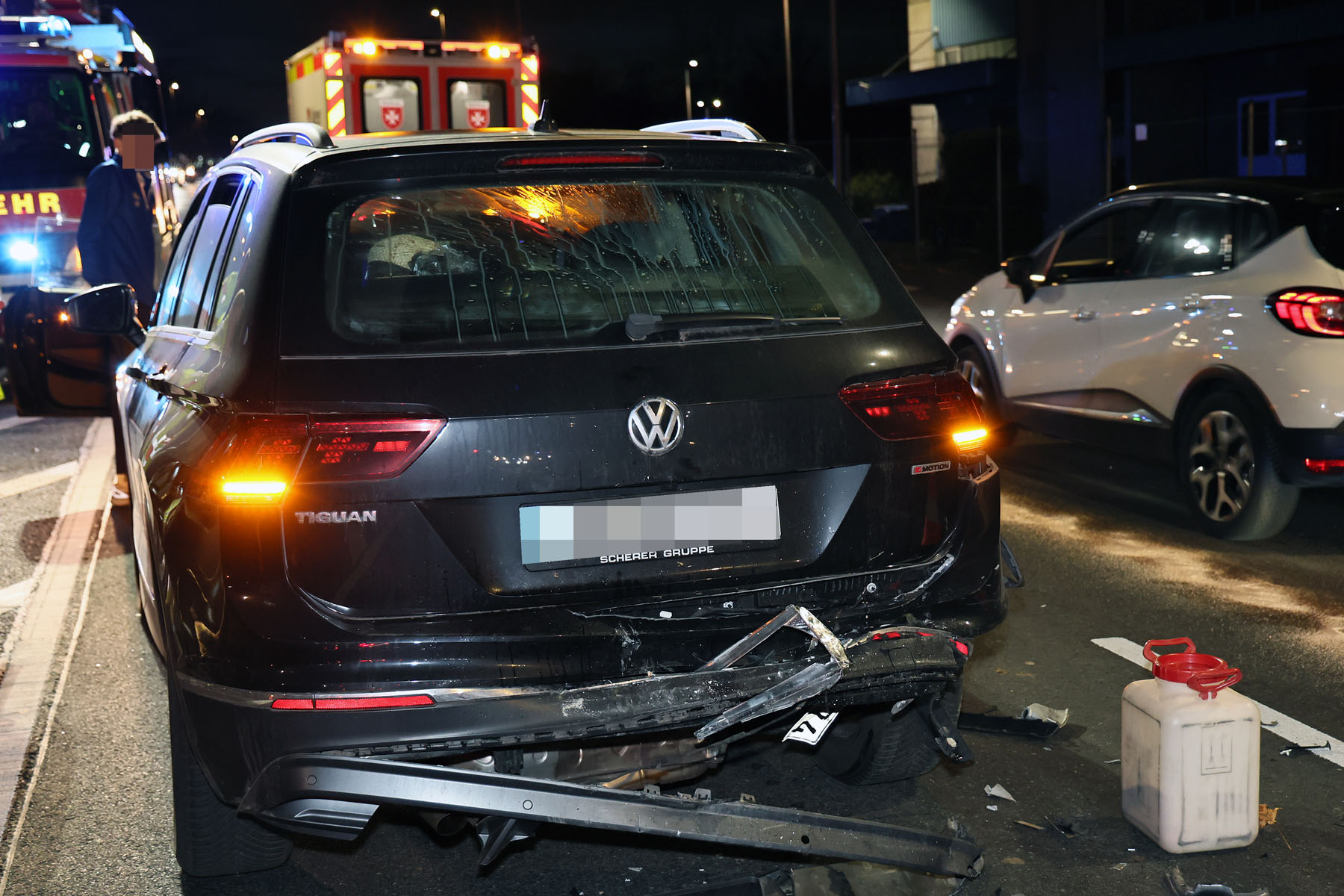 Gegen 17 Uhr musste eine stadteinwärts fahrende Mini-Fahrerin kurz nach der Kreuzung zur Weichertstraße verkehrsbedingt abbremsen. Auch ein hinter ihr fahrender Mann bremste seinen VW ab. Ein nachfolgender Skoda-Fahrer erkannte die Situation zu spät und prallte in das Heck des VW, ehe er diesen auf den Mini schob.