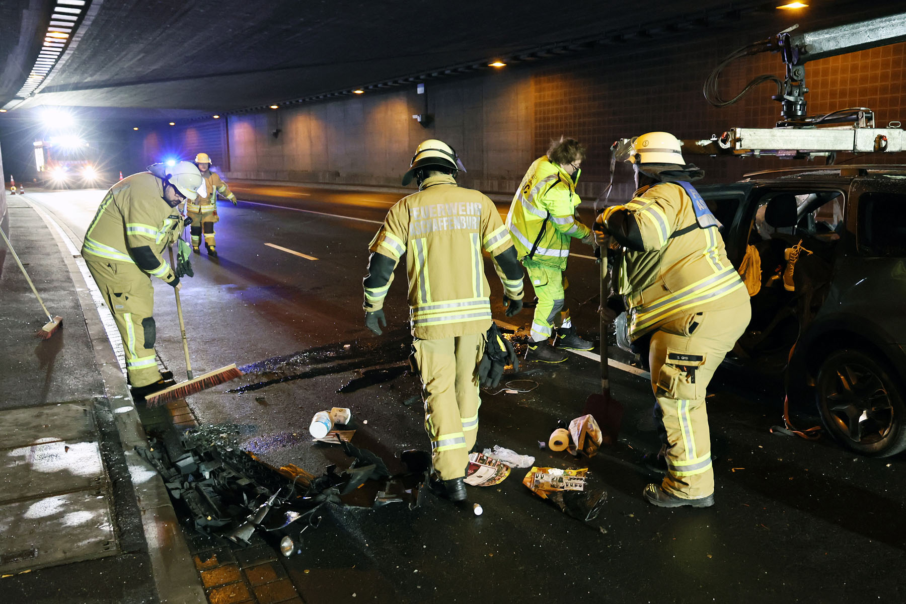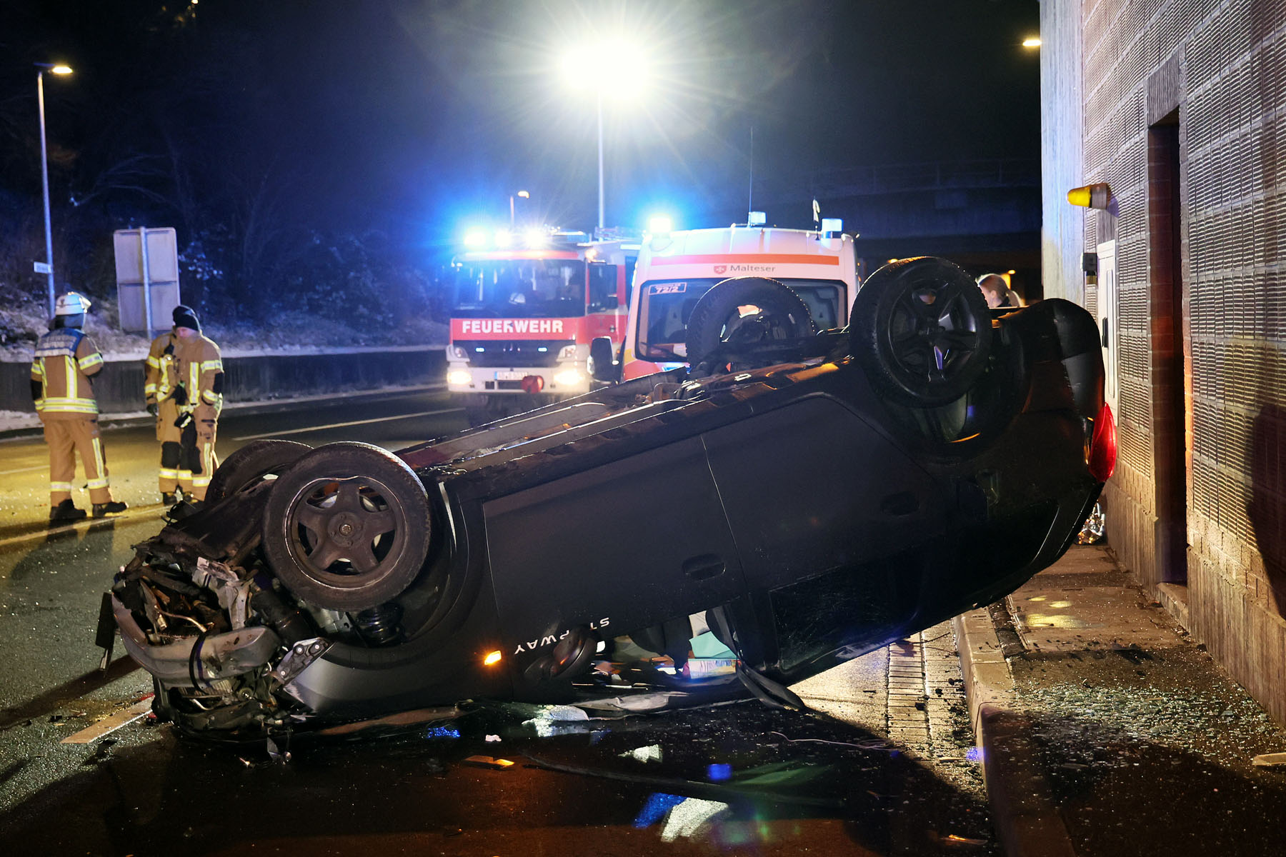 Kurz nach 1 Uhr war eine Dacia-Fahrerin auf dem Stadtring in Richtung Schweinheim unterwegs. In Höhe der Feuerwache kam sie aus bisher ungeklärten Gründen nach rechts von der Fahrbahn ab. Der Dacia prallte in die Tunnelwand, überschlug sich mehrfach und landete schließlich auf dem Dach. Bei dem Anstoß am Tunneleingang war die Fahrerin aus dem Fahrzeug geschleudert worden.