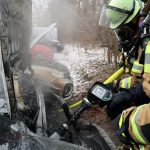 Gegen 15.45 Uhr wollte der VW-Fahrer nach einem Spaziergang sein Fahrzeug auf dem Parkplatz des Landschaftsparks starten. Dabei hörte er Geräusche aus dem Motorraum und stellte Flammen fest. Er brachte sich und seine Mitfahrerin in Sicherheit und verständigte die Feuerwehr.