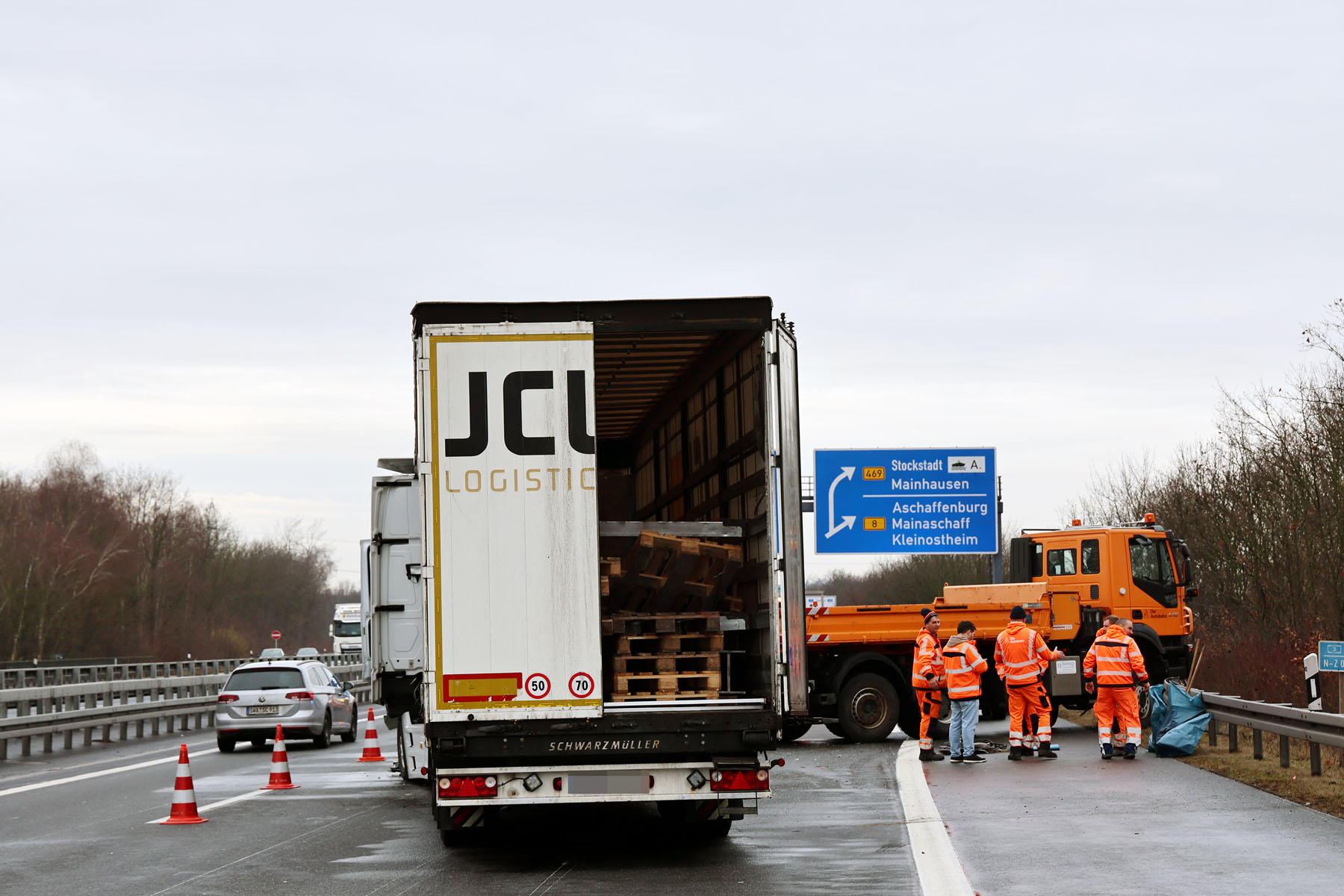 Die alarmierten Feuerwehren aus Aschaffenburg, Mainaschaff und Stockstadt sicherten kurzzeitig die Einsatzstelle ab, konnten jedoch schnell ihre Rückfahrt antreten, nachdem die Autobahnmeisterei die weiteren Sicherungsmaßnahmen übernommen hatte.
