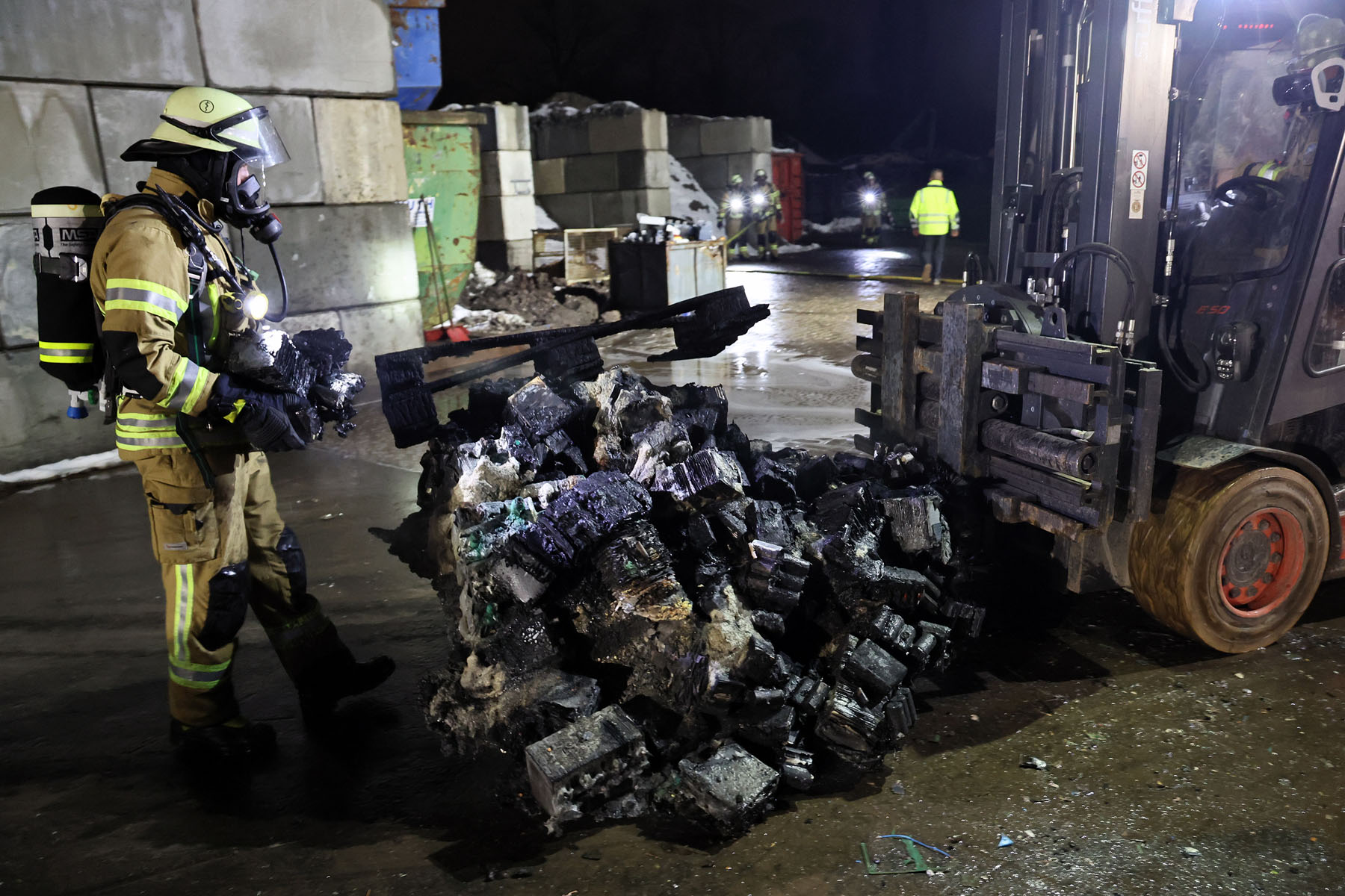 In einer Lagerhalle war eine abgestellte Palette mit Akkus in Brand geraten.