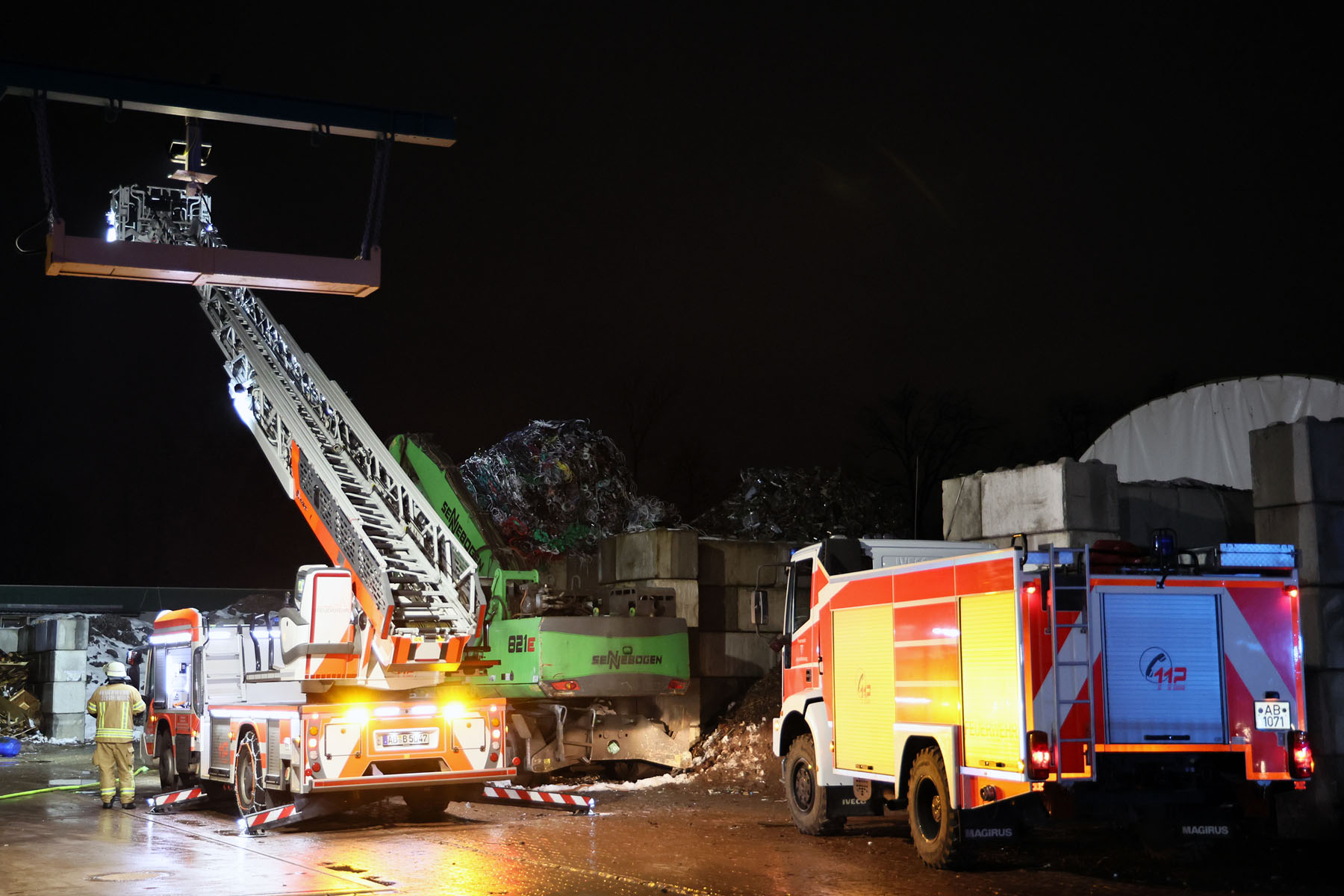 Gegen 17.30 Uhr wurde die Aschaffenburger Feuerwehr zu dem Brand in einem Entsorgungsbetrieb in der Römerstraße alarmiert.