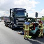 Vermutlich übersah er dabei einen dort fahrenden Mini Cooper. Der LKW stieß mit dem Pkw zusammen, welcher sich daraufhin drehte und einige Meter vom Lastwagen vor sich hergeschoben wurde.