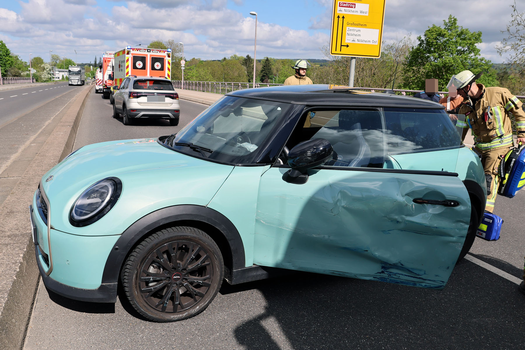 Bei dem Zusammenstoß erlitt die Fahrerin des Minis nach ersten Erkenntnissen leichte Verletzungen. Eine Ersthelferin kümmerte sich um die Fahrerin, bis die Rettungskräfte eintrafen.